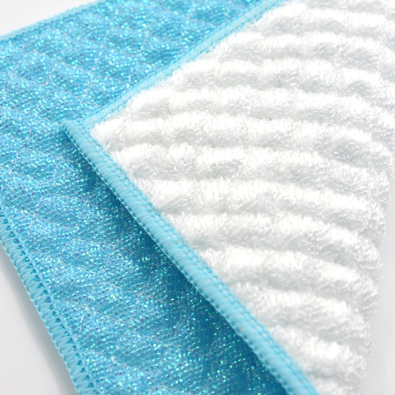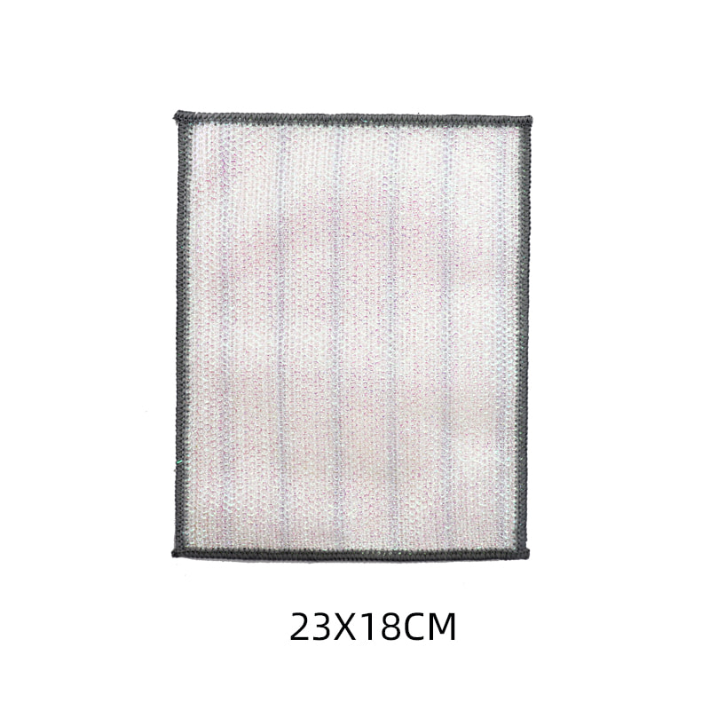 ผ้าขัดใยไผ่ไหมสี ด้านหนึ่งเป็นผ้าทำความสะอาดหลากสีสันที่มีความสามารถในการขูดขีดได้ดี และอีกด้านหนึ่งเป็นเศษผ้าใยไผ่ ซึ่งมีคุณสมบัติสองอย่างในการขูดและขัดด้านหนึ่ง ปราศจากน้ำมันและมีการดูดซึมน้ำได้ดี ทำจากผ้าไหมสีสันสดใส มีลักษณะสูงและมีการชุบ Zou บนพื้นผิว ซึ่งทำให้ผ้าทำความสะอาดไหมสีที่มีพลังการขูดสูงมีแรงเสียดทานมากขึ้น แต่ไม่ทำร้ายเครื่องครัว มีผลการทำความสะอาดที่ดีโดยไม่ต้องขจัดน้ำมัน