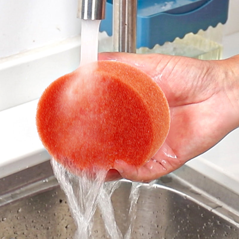 นุ่มลงเมื่อสัมผัสกับน้ำอุ่น: เมื่ออุณหภูมิของน้ำสูงกว่า 32°C ฟองน้ำจะนุ่มอย่างรวดเร็วและสามารถทำความสะอาดพื้นผิวที่ละเอียดอ่อนได้อย่างอ่อนโยน (เช่น หม้อเคลือบสารกันติด เครื่องแก้ว ผลไม้) โดยไม่ให้เกิดรอยขีดข่วน
